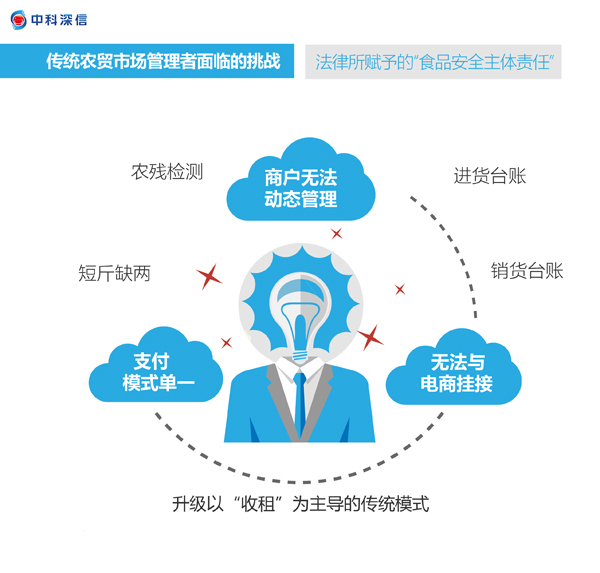 解决这个民生问题是政府的关注点,也更是诸如中科深信等服务于农产品行业等专业人士的所背负“责任”。最终,依托互联网科学技术的“智慧农贸”新模式应运而生!