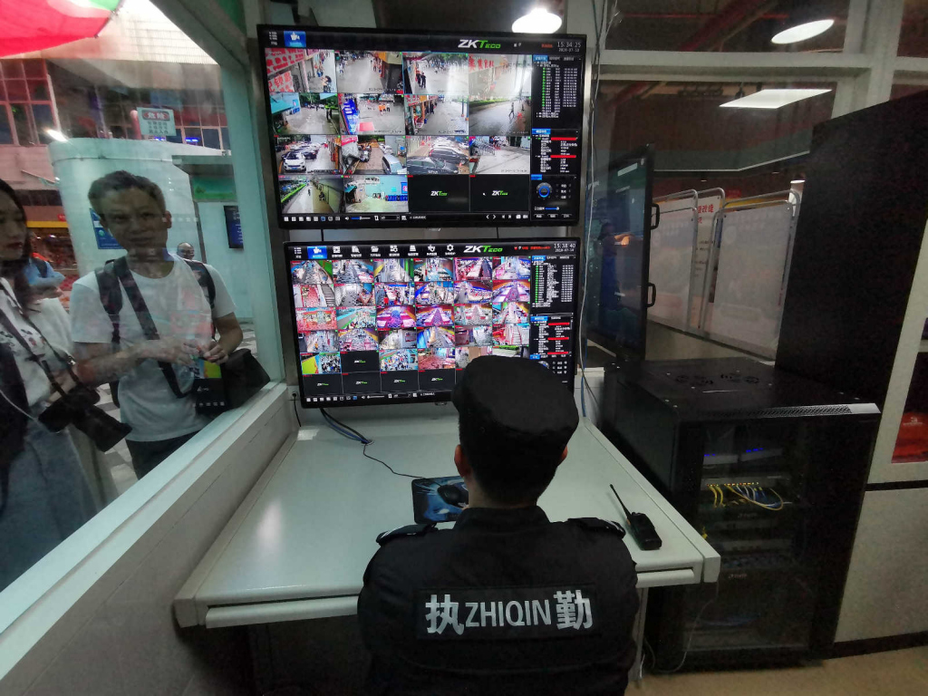 ▲在龙华市场食品安全监控中心,市场经营情况一目了然。