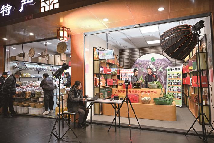新塍菜场内的“塍味直播间”里,菜场商户和主播通过互联网向消费者推荐当地的特色(6.610, -0.13, -1.93%)。